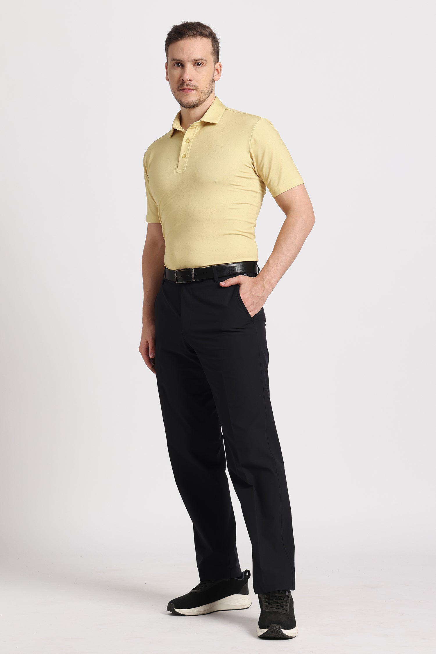 Engineered with advanced Kooltex® yarn, this golf T-shirt offers superior breathability, moisture control, and all-day freshness. Its stretchable, feather-light design ensures freedom of movement through every swing, while the tailored silhouette adds a touch of refinement both on the course and beyond without compromising on performance or style.